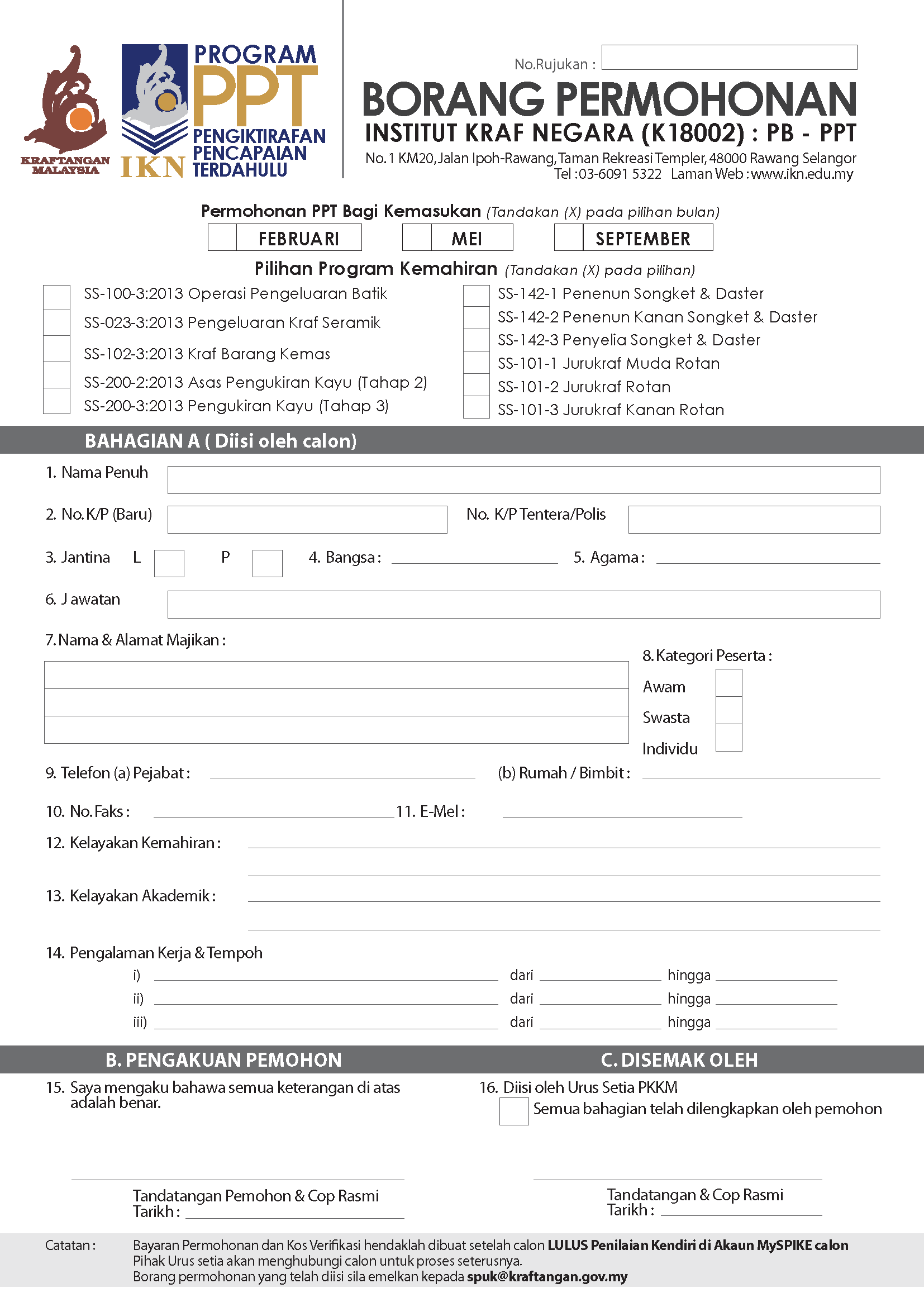 • Unit Jaminan Kualiti, IKN Seksyen Akademik & Kemahiran Kraf Tel: 03-6091 5322 (samb. 403)